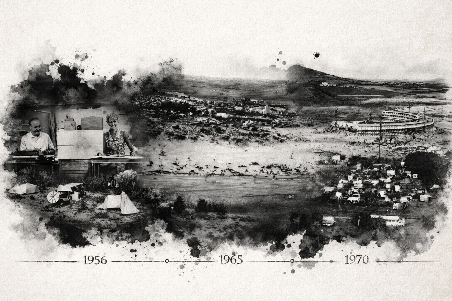 In 1958 verwelkomden de eerste bungalows de eerste naturistische vakantiegangers. Het centrum was nog bescheiden, maar het wezenlijke was al aanwezig: een gemeenschap, een geest, een visie.