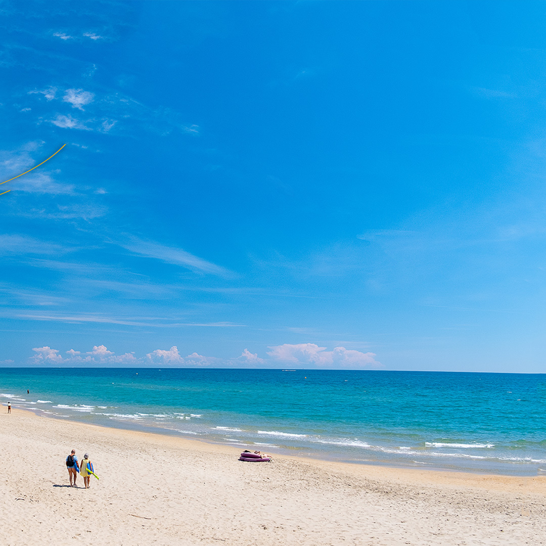 Plus de deux kilomètres de sable fin vous attendent pour poser votre serviette et profiter du soleil.